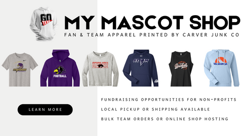 Carver Junk Company has launched My Mascot Shop, providing high-quality, locally-printed apparel to teams, businesses, educational institutions, and more. Fundraising options available for non-profit groups.