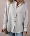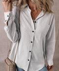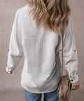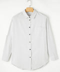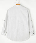Stripe Roll-tab Sleeve Pocketed Long Shirt