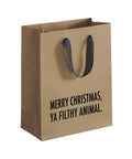 This 10” x 8” x 4” kraft paper gift bag comes with a cloth handle and a cheeky holiday message.