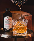 We've recreated this gentlemen's cocktail mixer by using classic bittering agents like gentian root and cinchona bark along with burnt sugar, spices and a bit of orange pell. Our non alcoholic old fashioned syrup ages in Willett bourbon barrels to allow the flavors to come together and ramp up the intensity. It is super concentrated so a little bit goes a long way.