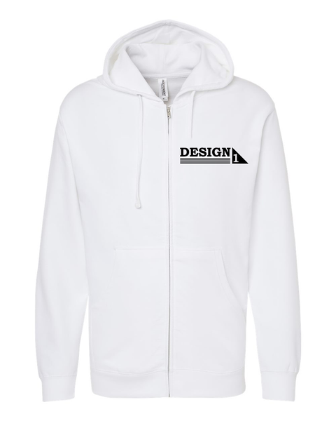 Full-zip unisex hoodie, with the Design 1 Logo. Printed to order in 5-7 business days.
