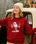Spread holiday cheer in this delightfully cozy red crewneck sweatshirt featuring a joyful Santa design. Perfect for festive gatherings, lazy winter days, or anyone who embraces the jolly spirit of the season. The soft, comfortable fabric keeps you warm while the cheerful Santa graphic brings smiles all around. Celebrate the magic of the holidays in style with this must-have seasonal favorite that captures the beauty and warmth of Christmas.
