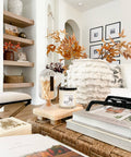 Our artisanal stands feature raw, natural wood and do not have a finish, showcasing the beauty of the wood grain and imperfections.